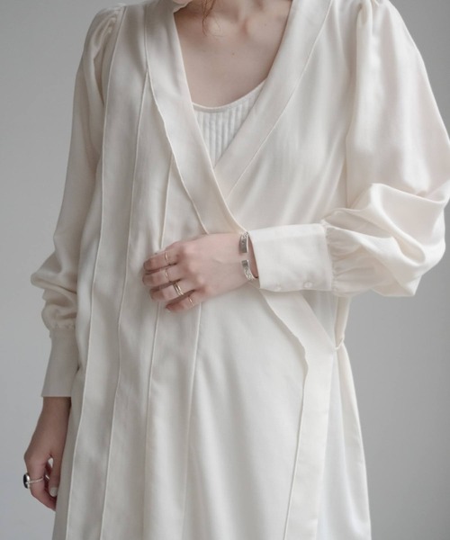 ■デザイン・コーディネートアシンメトリーに配したプリーツのデザインが特徴的なカシュクールのワンピース。前後どちらを前にしても着用可能。カシュクールの開きを前にして軽いガウンのようにも開きを後ろにして、背中を開いたワンピースとして着用いただけます。ウール混の布帛で、ふくらみがあり肌触りがよく一年を通じて活躍する素材を選びました。肩のパフギャザーからのボリュームと細く長め袖口が、自然体でありながら女性らしく着ていただけるアイテムです。■洗濯手洗い可※取り扱いショップ「Kastane」内での販売となりますが、ONEME(ワンム)ブランド製品となります。ご確認の上ご購入いただけますようお願い致します。――――――――――――――――――――――――――――――――ONEME(ワンム)Oneself memory_自分らしくを今でもこれからも大切に京都山城地区で作られる “柿渋” を消臭・抗菌成分とする、服にも、髪にも、肌にも使えるリフレッシュミストを軸として天然由来成分90%以上にこだわった、新しい習慣を創造するコスメの開発「服、髪、肌」をキーワードに日本の技術や素材を中心とした洋服、アクセサリー、インナーウェアはじめセレクトアイテムを展開自分らしく心地よい生活を求める人へ日常のあらゆる瞬間に関わるアイテムを提案します――――――――――――――――――――――――――――――――▼商品のお気に入り登録ハートマークをクリックし、お好きなカラーを選んでお気に入りに登録完売カラーの再入荷通知や、ラスト1点の通知、セールの通知も受け取ることができます。▼ブランドのお気に入り登録新商品や再入荷等、いち早くブランドのお得な情報を受け取ることができます。<返品・キャンセルについて>・着用・洗濯後の返品・ご交換は致かねます。・商品到着後、着用前に商品を確認して頂きますようお願い致します。※生産時期により色・素材・サイズ感など多少異なる場合がございます。※掲載画像の商品の色味は、屋外や屋内の光の照射や角度により実物と色味が異なる場合がございます。また表示のサイズ感と実物は若干異なる場合もございますので、予めご了承ください。