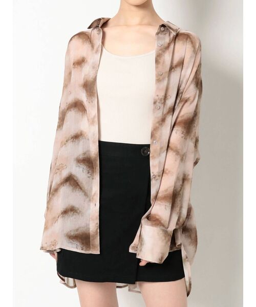 オリジナルのマーブル柄を使用したシアーシャツです。程よい透け感で着用しやすい生地感です。独特な柄ですが、カラーが落ち着いているのでこなれた雰囲気で着用できます。サイズ感はゆったりめで着やすさも抜群です。