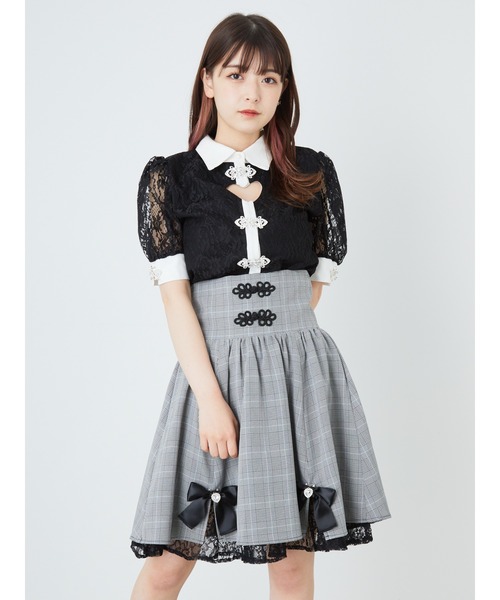 ウエストのチャイナモチーフがポイントになって、旬なルックスを叶えるスカートの登場です♪ ウエストラインをキレイに魅せるコルセットデザインで、女の子らしいメリハリのあるルックスを演出◎ 裾にはレースが重なり、抜け感のあるスリットもあしらわれて、歩くたびに可愛く映えます。取り外し可能なリボンをプラスすれば、一気にフェミニン度がUPするオススメのアイテムです☆