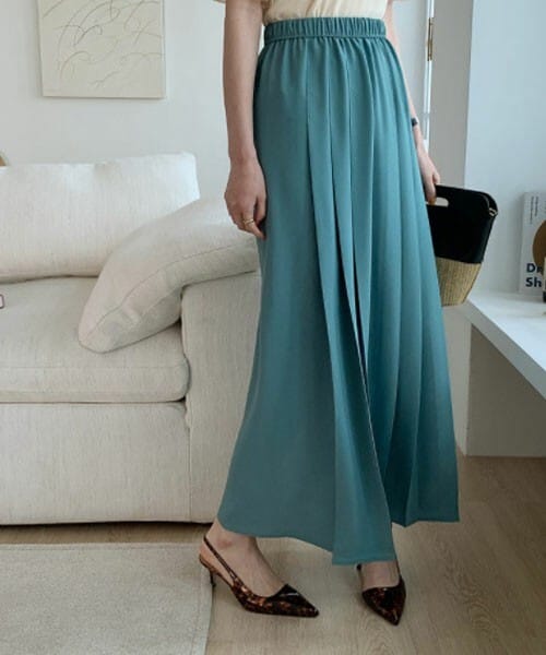 フロントプリーツデザインの女性らしいスカートです。足元にはスリットで動きをつけており、ウエストは全体がゴムなので楽に着用できます。シンプルなトップスでデザインを生かすとGOOD。 ※WEARに記載してある金額と、DHOLIC通販サイトに記載してある金額にシステム都合上、稀に誤差が生じます。正しい金額はDHOLIC通販サイトに記載された金額です。