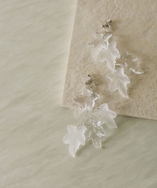 【お顔周りが華やかになるリーフイヤリング】夏にぴったりな透け感のあるアクリルリーフイヤリング。大振りで存在感のあるアイテムなので、自然と顔周りが華やかになります。同シリーズのピアスもございます。(KB16-2LV019 アクリルリーフピアス)※商品画像は、光の当たり具合やパソコンなどの閲覧環境により、実際の色味と異なって見える場合がございます。予めご了承ください。※商品の色味の目安は、商品単体の画像をご参照ください。