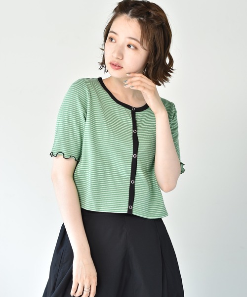 配色デザインが可愛い!ショートカーデ コーディネートのプラスワンアイテムとして活躍するショート丈カーディガン 半袖丈で夏のクーラー対策にも活躍する一枚。 カーディガンとしてはもちろん、前をしめてトップスとしても。 細かなボーダー柄にアクセントになる配色デザインも魅力です。 豊富なカラー展開で何枚も欲しくなる存在感のあるカーディガンは、一つ持っておくと大変重宝します! ※撮影環境やご覧のモニター環境によって実際の商品とお色味が多少異なってみえる場合がございます。ご理解の程何卒よろしくお願い致します。