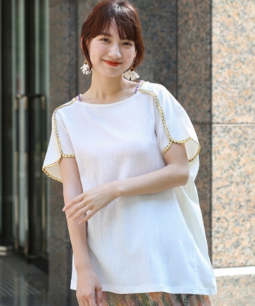 エスニック要素を所々に散りばめたプルオーバー 肩からちらりと見える幾何学テープで、1枚でもレイヤード風の着こなしに。 そして、柄のパイピングで袖口や切り替え部分にもアクセントを加えた抜かりないデザインです! 前はシボ感のあるサラッとした素材、後ろは薄手のカット生地で涼しく着られるのがポイント。 ゆったりとした身幅とドルマンスリーブで、リラクシーな大人っぽさを演出してくれます。 シンプルなので柄のボトムスと合わせるとこなれ感のあるコーデが完成します◎ サイズはレディースフリーサイズ、カラーはオフホワイト、ブラック、ブラウンの3色からお選びください。 【TITICACAのお買い物をお楽しみいただくために!】 ▼商品のお気に入り登録 完売カラーの再入荷通知や、ラスト1点の通知、セールの通知も受け取ることができます。 ▼ブランドのお気に入り登録 新商品や再入荷など、いち早くブランドのお得な情報を受け取ることができます!