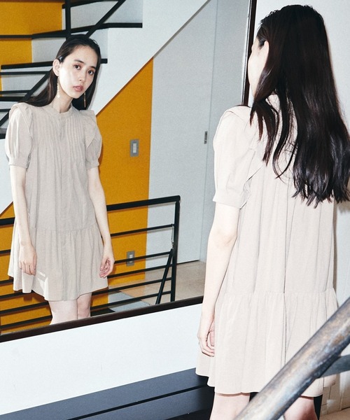 ラッフルショルダが映える!ガーリーなミニワンピース ラッフル&ミニ丈でガーリームードながら、落ち着いたカラー展開とピンタックのディティールで大人っぽさをプラス。 吸水性と通気性に優れた綿100%の生地で、暑い季節にうれしいアイテムです。 【styling】 夏はサンダルで涼しげに、秋になったらボリュームソールのシューズやブーツなどを合わせて。 スタンドカラーなので髪をまとめて首を見せると、すっきり涼しげに着こなせます。 S:S(01):着丈87cm 身幅46cm 肩幅29cm 袖丈29cm M:M(02):着丈89cm 身幅47.5cm 肩幅30cm 袖丈29.5cm