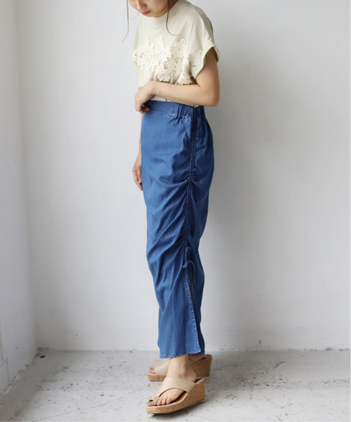 サイドにレースアップを施し、可愛さとすっきりとしたシルエットキープできるデニムスカート Point1:レースアップで女性らしさとカジュアルデニムが大人可愛い印象 レースアップデザインで可愛い印象だけでなく、 スカートのシルエットをスッキリ見せることができ、縦にスラっと細く見せることもできます。 Point2:肌触り滑らかで心地よいデニム生地 スカートは裏地も付いて安心。またしっとり柔らかいデニム生地は特有の硬さもなく、 着心地良く着用できます。 お手入れ:手洗いにてお手入れしてください。
