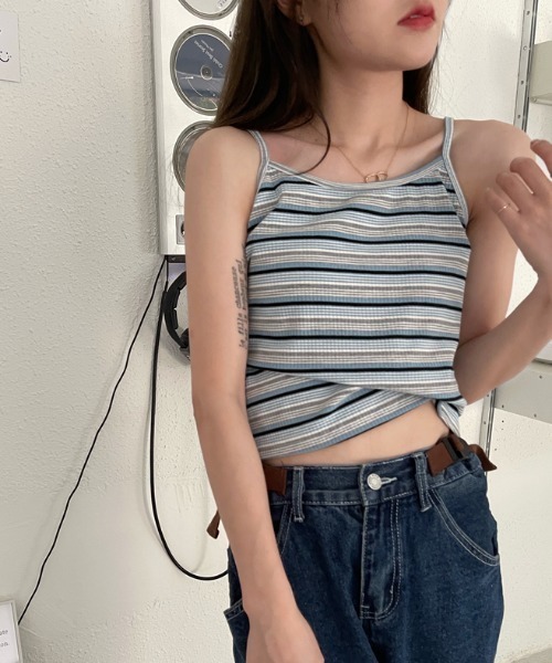 ♦配色◎カジュアルなボーダー柄♪シンプルなデザインで幅広いコーデに。●DesignBLACK・BLUEの2色展開。どちらのカラーも使いやすい色味で着回し力◎凹凸のある素材感。太ボーダーと細ボーダーの色バランスが◎ストラップが細めなので華奢見え効果も。ヘルシーなデザインのキャミソールで夏に大活躍するはず。さらっと着れるのにお洒落にキマる1着となっています。カジュアルスタイルから綺麗めのスタイルにもマッチするので幅広くお使いいただけます。●Styling1枚で着るのはもちろん、オーバーシャツやシアーシャツ、メッシュトップスとレイヤードして着るのもオススメ。ベーシックなデザインで様々なボトムと合わせていただけます。定番のデニムやショートパンツ、ワイドパンツ、スラックスでラフなカジュアルスタイルにも。人気のフレアパンツにもマッチ◎フレアスカートやタイトスタート、プリーツスカートでカジュアルガーリーなコーデもキュート♪足元はトングサンダルやフラットサンダル、スクエアサンダルで夏らしい抜け感のあるスタイルが◎ヒール合わせでレディな雰囲気に。韓国ファッションが好きな方は是非。夏に大活躍するトップスになること間違いなし♡こちらの商品はセレクト・インポートアイテムのためサイズ感が日本規格のものとは異なります。お買い上げの際にはサイズチャートでご確認頂きますようお願いいたします。【お買い物をよりお楽しみいただくために】●商品のお気に入り登録(ハートマークをクリック)完売カラーの再入荷や、ラスト1点のお知らせ、セール情報などの通知を受け取ることができます。●ブランドのお気に入り登録新商品や再入荷など、お得な情報をいち早く受け取ることができます。●最短で翌日お届け商品をカートに入れた後、注文内容の確認ページで「即日配送」を選択していただければ、最短でご注文した翌日にお届け致します。是非ご利用頂き、お買い物をお楽しみください。※ご注文いただいた予約商品のお届け時期の確認は、注文履歴ページより行えます。