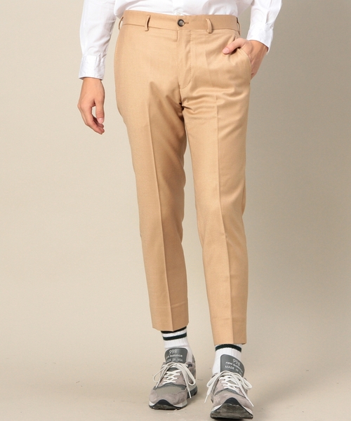 足首が覗いてコーディネートに軽さを加えられるパンツです。トレンド感も十分で、シンプルにまとめてもオシャレ感を演出できます。上質な風合いにセンタープレス加工がきちんと見えるポイントです。ベーシックな単色使いで、トップスや小物のアレンジで多彩な雰囲気を楽しめます。 店舗にてお問い合わせの際は、全国のBEAUTY&YOUTH 各店舗まで下記の品番をお申し付け下さい。 品名:BTR W/R SAXONY NO-P 品番:1214-188-5917