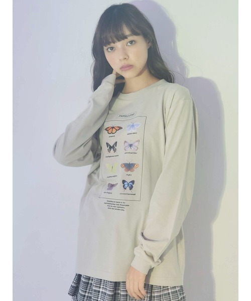 merry jenny(メリージェニー)まるで蝶々の 標本のような。繊細な 美しさを プリントしたlong Teeです。色鮮やかな 蝶々たちは、今にも 羽ばたきそうなほど。casualに パンツstyleでも、feminineに スカートと合わせても。どんなstyleにも マッチする使いやすいitemです。