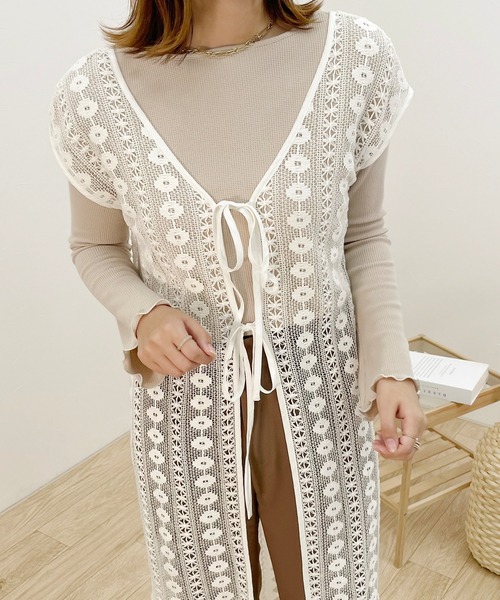 オールシーズン着られる”ベスト型ワンピース”NO.1はこのアイテムで決まり! 多くの人が注目している"かぎ針レース"! clairでも様々なかぎ針レースアイテムを出してきましたが、どれも大反響で予約になった商品も多数。 そんなかぎ針レースで全体を仕立てたベストワンピースがこちら。 かぎ針特有の様々な編み目の隙間によって生まれる透け感は今の季節にぴったり。 素材は肌に優しい綿100%。 かぎ針レースには凹凸感があり、一見肌触りが気になりますが、 100%綿を使用しているためにチクチクすることはありません。 サイドスリットが大きめに入っているため、足さばきがよく、こなれた印象に。 レイヤードスタイルがおすすめなアイテムなので、丈感はどの身長の方もすっきり着用いただけるサイズ間でお作りしています♪ コーデが楽しい一枚間違いなし! 【コーディネート】 リボンを前にした可愛いスタイルとリボンを後ろにしたシンプルなスタイルの2wayで着用いただけます。 ワンピースの中はIラインシルエットを活かした、シンプルめなTシャツやタンクトップ、パンツがおすすめです。 甘カジスタイルにバッチリです。 ………………………………… 透け感:あり 裏地:なし 伸縮性:若干あり ………………………………… ※ご覧のモニター環境や撮影環境により実際の商品と多少色味が異なって見える場合がございます。 ご理解の程よろしくお願いいたします。 【お買い物をよりお楽しみいただく為に♪】 ▼商品のお気に入り登録をおすすめします ♡をクリック! 完売カラーの再入荷や、ラスト1点の通知、 セールの際の通知を受ける事ができます。 ブランドのお気に入り登録も ご一緒にお願い致します。