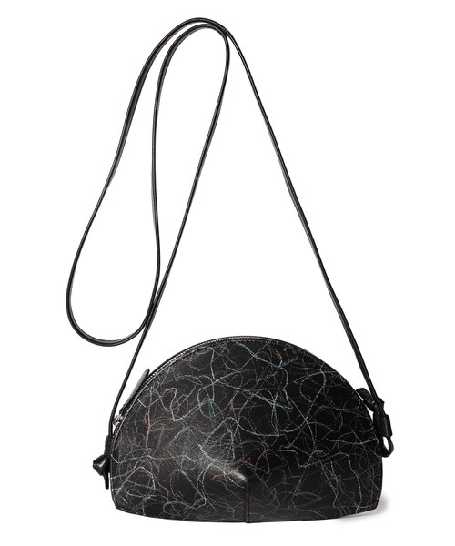 パステルの落書きを再現した革でアートピースのようなバッグを作りました。コロンとしたフォルムが遊び心のあるポシェットには、ミニ財布やスマホなど最低限の荷物を入れてスマートに。身軽に出かけたい時や、身に着けておきたい貴重品を入れるミニバッグとして活躍します。ショルダーストラップの長さは調節可能。素材は、染色した牛革にオリジナルのプリントを施しています。モデル情報:身長166cm B80 W59 H86店舗へのお問い合わせ商品番号:709-01243●製品寸法:00:高さ14cm 幅(上部)18cm 幅(下部)20cm マチ2cm ショルダー対応サイズ~120cm備考:重量:約135g(サンプル重量)