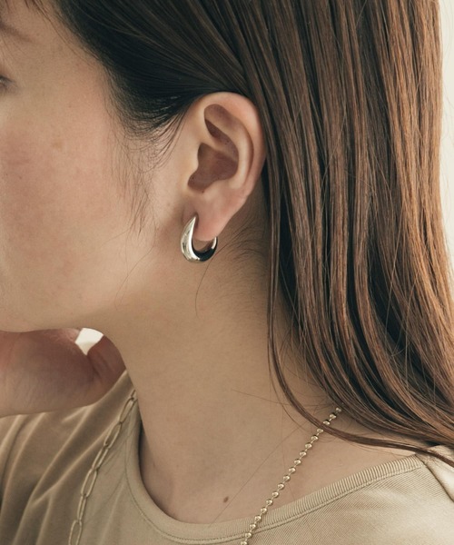 【ピアス見えするフープイヤリング】 プックリとしたメタルフープのイヤリング。 ほんのりドロップ型のシルエットですっきりシンプルな存在感。 クリップタイプの仕様で着脱もスムーズ、フープピアス見えするデザインも嬉しいです◎ ※メッキ製品は変色してしまいがちです。こまめなお手入れで防止してください。アレルギー体質の方や体調が低下している方など、かぶれることがありますので十分にご注意ください。 ※アクセサリーは壊れやすいものです。取扱いにご注意ください。 ※その他お取り扱いに関しましては、商品に付属のアテンションタグをご覧ください。 ※商品画像は、光の当たり具合やパソコンなどの閲覧環境により、実際の色味と異なって見える場合がございます。予めご了承ください。 ※商品の色味の目安は、商品単体の画像をご参照ください。