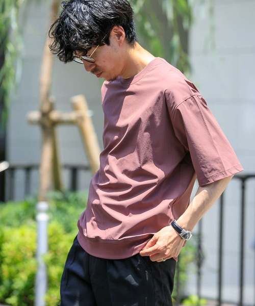 夏場に嬉しい吸水速乾に優れたクイックドライTシャツ。 通気性が高く、暑苦しい夏場でも汗を吸って素早く乾かしてくれる吸水速乾機能がドライな着心地与えてくれ快適に過ごしていただけます。 オーバーサイズシルエットに落とし込むことでスポーティーな印象が強いナイロン素材でも普段のスタイリングに取り入れやすく、デニムやスラックスなど様々なアイテムと合わせていただけます。 ----------------------------- 《スタッフ着用コメント》 [スタッフA] 年齢 : 20代後半, 身長 : 160cm, 体型 : 普通 普段の着用サイズ : S,M パーソナルカラー : ブルーベース 冬タイプ 【着用カラー/サイズ】BLK/M 【サイズ感】肘に袖がかかるくらいのゆとりのあるサイズ感です。 【素材感】サラッとした化学繊維らしい素材感。少しひんやりして気持ちいいです。 【着心地】オーバーな作りなので身体の動きを邪魔せず着用できました。 【その他】1枚で勝負できるTシャツです。全色買ってもいいくらいヘビロテできます! ----------------------------- ※商品画像は、光の当たり具合やパソコンなどの閲覧環境により、実際の色味と異なって見える場合がございます。予めご了承ください。 ※商品の色味の目安は、商品単体の画像をご参照ください。 ▼お気に入り登録のおすすめ▼ お気に入り登録商品は、マイページにて現在の価格情報や在庫状況の確認が可能です。 お買い物リストの管理に是非ご利用下さい。 ----------------------------- 透け感:なし 伸縮性:ややあり 裏地:なし 光沢:なし ポケット:なし -----------------------------