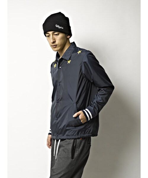 ■FELICITYよりジャケットです。ストリート感を演出するコーチジャケットとなります。前後の肩部分に配色の☆刺繍が施され、裾部分にドローコードが通っており絞ることが可能です。オリジナルのハンガーが付属します。