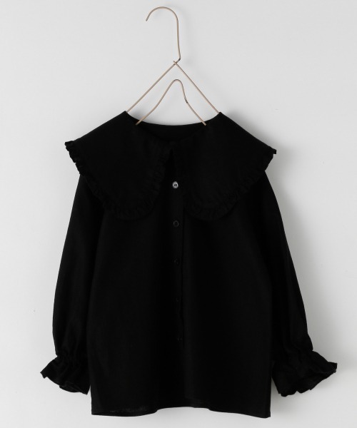 大きめのフリル衿が可愛いブラウス。 大人用の957672 リネンフリルカラーブラウス5Sとお揃いで、キッズは秋に向けても使えるように長袖になっています。 カジュアルなボトムに合わせた甘辛MIXスタイルがおすすめ! ジャンスカに合わせてちょっぴり”おすましスタイル”も可愛いです!