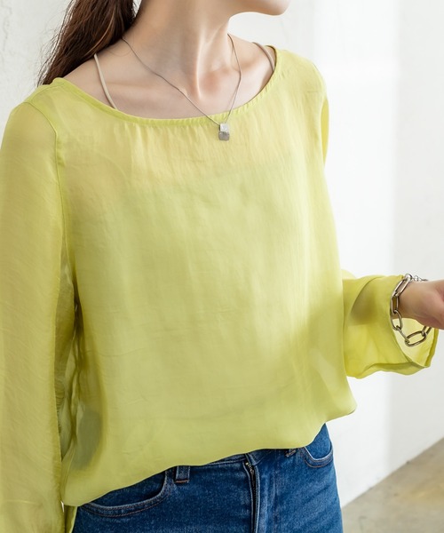 レイヤードスタイルにもピッタリなシアートップスが登場! 商品ポイント ・トレンドのシアー素材がスタイリングのポイントに。 ・サイドにスリットが入っているのでアウトスタイルも、こなれた雰囲気に。 ・広めのボードネックデザインが女性らしい印象に。 ・裾が広がりすぎないデザインなので、レイヤードスタイルにもぴったり。 スタイリングポイント ・夏は、キャミソールと合わせてトップスとして、秋冬は、レイヤードスタイルに◎ ・ゆったりとしたシルエットのボトムスと合わせると◎ スタッフ着用コメント 身長:150cm 骨格:ストレート これからの季節のレイヤードスタイルに ぴったりのアイテムです。 ニットやシャツと合わせるスタイルがおすすめです。 シンプルなアイテムと合わせても、 決まりやすいので着回し力抜群です! 身長:157cm 骨格:ナチュラル 素材感が女性らしく、 パンツに合わせてもカジュアルになりすぎません。 透け素材で、スリットも入っているので、 アウトスタイルでも印象が重くならず、 こなれた印象に仕上がります! 身長:163cm 骨格:ウェーブ 抜け感の出る素材感で、印象が重くなりやすい 秋冬のスタイルに欠かせないアイテムです。 ボードネックデザインも、首周りをきれいに見せてくれます。 デニム生地やレザー素材などの重い印象のボトムスと 合わせてもバランスが取れるアイテムです! 骨格タイプ ストレート:全体的に立体型で筋肉質。 ひざ下はすらっと細め。ボディラインにメリハリがある。 ウェーブ:上半身が薄く、華奢。 緩やかな曲線のボディライン。 下半身に重心があり女性らしい体型。 ナチュラル:筋肉や脂肪があまり感じられない体型。 腰の位置が高く骨や関節が目立ちやすい。 ※洗濯、取り扱い 洗濯:40度限度 手洗い アイロン:低温110℃まで スチームなし タンブル乾燥:不可 <製品の取り扱い注意> ・ネット等を使用し他のものとのひっかかりにもご注意ください ・タンブラー乾燥はお避け下さい ・浸け置き洗いを避けてください ・中性洗剤をご使用ください ・ベルトやバッグなどとの引っ掛けに注意してください ・この製品は大変デリケートな素材を使用しております。 激しい運動や強度な力が加わると、縫い目が開いたり目寄れする性質があります。 着用の際はご注意ください ------------------------------------------------------ 裏地:なし 伸縮性:ふつう 光沢感:なし 生地の厚さ:うすい ------------------------------------------------------ ------------------------------------------------------ 商品のお気に入り登録➡ お気に入りアイテムの値下げ・再入荷・在庫1点などの通知を受け取ることができます。 ブランドのお気に入り登録➡ 新商品や再入荷、セール、クーポン配布などお得な情報を受け取ることができます。 ※サイト上のカラー名と、お届け商品に記載されているカラー名が異なる場合がございます。 ※商品の色味は、撮影場所や光のあたり具合などにより色味が違って見える場合が御座います 。 また、お客様のお使いのPCのモニター環境などにより色味が違って見える場合が御座います。予めご了承の上ご注文下さい。 ※ご注文いただいた予約商品のお届け時期の確認は、注文履歴ページより行えます。 ------------------------------------------------------