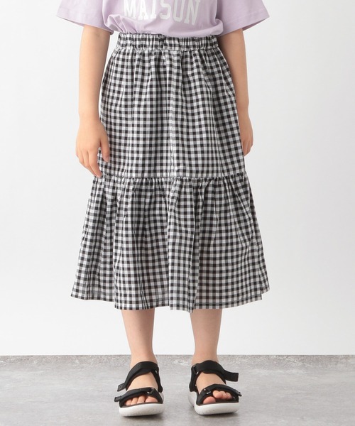 ☆サイズ展開拡大アイテム☆ ふんわりティアードスカート♪ 【デザイン】 トレンド感のある長めの丈と低い位置での切替えデザインがポイント♪ 軽やかでふんわりとした雰囲気のスカートはこれからの暑い季節にもピッタリなおススメアイテムです☆ ウエストはゴム仕様なので お子様でも履きやすいスカートとなっています。 またサイドポケット付きなのでハンカチも収納できます♪ ウエストゴム調節口が付いているので、若干のサイズ調整は可能となっています。 【素材】 柔らかな風合いが特徴の綿素材になります。 綿素材なので毛玉になりにくいのも嬉しいポイント♪ 【スタイリング】 フォトTシャツ合わせなどがおススメです!