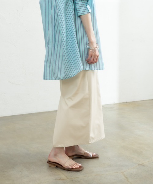 スタイリングのアクセント使いにおすすめなタイトスカートが登場! 商品ポイント ・フェイクレザーの素材感がスタイリングのアクセントに。 ・後ろに入ったスリットが抜け感のある印象に。 ・タイトなシルエットが細見えを叶えてくれます。 ・バックがゴム仕様になっているので、履き心地抜群です◎ スタイリングポイント ・丈が長めなので、丈感短めのトップスと合わせるとスタイルアップに◎ ・Tシャツやシャツなどと合わせやすく、季節を問わず着まわせるアイテム。 ※洗濯、取り扱い 洗濯:不可 アイロン:低温110℃まで (あて布使用) スチームなし タンブル乾燥:不可 ------------------------------------------------------ 裏地:なし 伸縮性:ふつう 光沢感:なし 生地の厚さ:ふつう ------------------------------------------------------ ------------------------------------------------------ 商品のお気に入り登録➡ お気に入りアイテムの値下げ・再入荷・在庫1点などの通知を受け取ることができます。 ブランドのお気に入り登録➡ 新商品や再入荷、セール、クーポン配布などお得な情報を受け取ることができます。 ※サイト上のカラー名と、お届け商品に記載されているカラー名が異なる場合がございます。 ※商品の色味は、撮影場所や光のあたり具合などにより色味が違って見える場合が御座います 。 また、お客様のお使いのPCのモニター環境などにより色味が違って見える場合が御座います。予めご了承の上ご注文下さい。 ※ご注文いただいた予約商品のお届け時期の確認は、注文履歴ページより行えます。 ------------------------------------------------------