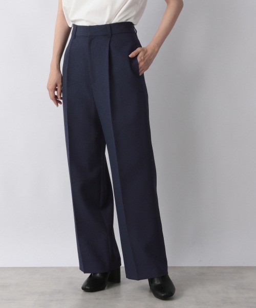 多機能生地「LANATEC(ラナテック)を使用したワイドシルエットのリラックスパンツ。特殊なポリエステル糸を使用してウールの様な風合いを表現したウールライクファブリック。ふんわりとした膨らみのある風合いで、シワにもなりにくく、イージーケアでお手入れもしやすいアイテムです。 同素材の949109 ラナテックタキノウショートジャケットとセットアップ着用可能。オーバーサイズのインナーを合わせると今年らしいバランスで着用出来ます。すっきりとしたセミワイドのシルエットなので取り入れやすいパンツになっています。