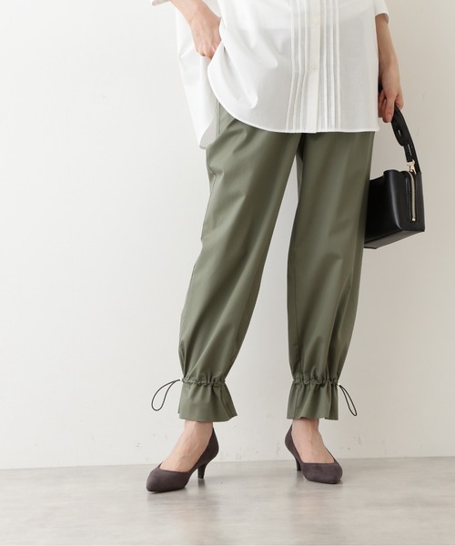 やや光沢があり肌触りの良いコットンテンセル素材を使用。裾を絞ってシルエットが変えられるドロストヘムデザイン。裾を絞るややスポーティーなデザインだから、足元はスニーカーではなく、敢えてヒールを合わせて女性らしく着こなすのがオススメ。裾を絞らず、シンプルにストレートシルエットでも着られます。※モデルの着用画像の場合、光の当たり具合により、実際の色味と異なって見えることがございます。色味は、商品単体の画像をご参照ください。
