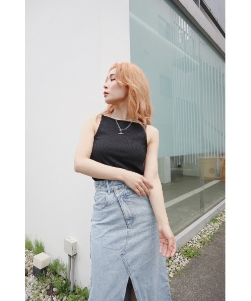 大きく開いたバックデザインで背中を綺麗に見せてくれるキャミソール!さらに、フロントはスクエア型のデザインなため、デコルテをヘルシーかつ綺麗に見せてくれます。ブラ要らずで着用できるパッドインタイプなので、これ一枚でサラッと着こなせます。