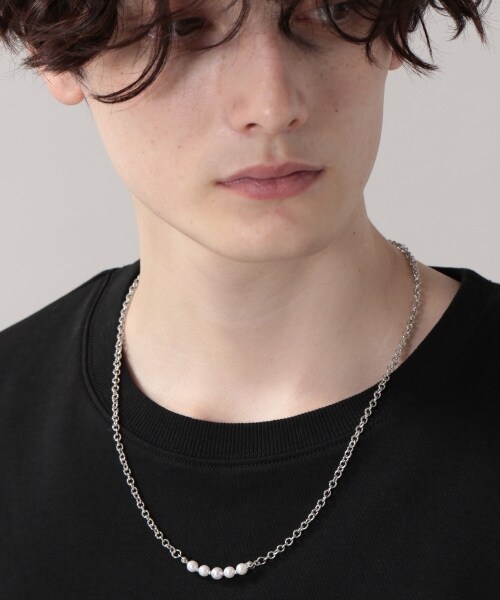 ーーー今トレンド急上昇中のパール×シルバーチェーンのコンビネーションネックレスが登場。さりげないパールなのでファッションに取り入れやすいのも嬉しいポイントです。男女共にユニセックスでお使いいただけますし、プレゼントやギフトにもおススメです。ーーートレンドのパールを取り入れるだけで、トレンド感が高まりシンプルなコーディネートのアクセントになります。パールとシルバーチェーンのコンビネーションなので、ファッションに取り入れやすく、首元を華やかに演出してくれます。3種類異なるデザインで、それぞれ長さも微調整できるので、手持ちのネックレスと重ね付けも◎