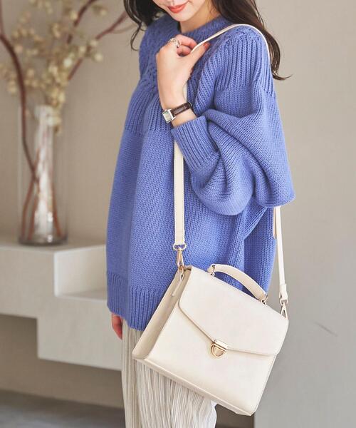 ~2021 FALL/WINTER COLLECTION~スタイリングにキチンと感&トレンド感をプラスするバッグ■デザイン/素材どこかレトロでクラシックな雰囲気の2WAYバッグ。ショルダーは取り外してハンドバッグとしてもご使用いただけます。自然な風合いを意識したフェイクレザーを使用し、上品な見え感を実現しました。500ミリリットルのペットボトルは横にすれば入り、350ミリリットルのペットボトルは縦に入るサイズで提案しています。形がしっかりしており自立するのも魅力です。■スタイリングデイリーユースに重宝するサイズ感で大活躍の予感。キレイ目にはもちろん、カジュアルスタイルの引き締めアイテムとしておすすめです。ニットやボアアウターに斜め掛けしたスタイリングも今年らしくきまります。................................内ポケット×2................................【注意点】※撮影商品はサンプルの為、実際の仕様と異なる場合がございます。※画像の商品は光の照射や角度、お使いのモニター環境により、実物と色味が異なる場合がございます。スタジオ物撮りの画像が実物の色味に一番近くなっております。※予約商品の場合、実店舗への入荷は「お届け予定」とほぼ同時期となりますが、実店舗への入荷が前後する場合もございます。品名:81 2WAYショルダーバッグ 品番:7689-618-0008