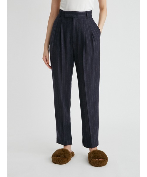 トレンド感と美脚を同時に叶える最新版ジョッパーズパンツDesign/Styling今季注目のジョッパーズパンツ。拘りの美シルエットで美脚に導きます。美脚に導きます。ウエストには2本のタックを入れて腰回りに程よいボリューム感を出し、裾は細めに設定して、腰回りから裾にかけてメリハリのあるシルエットに仕立てています。ウエスト位置も高めに設定しているので自然と腰の位置を高く、ヒップのボリュームもカバーして美脚に。裾にスリットを入れることで、ベーシックすぎない抜け感が生まれるのでより取り入れやすくなっています。今季はロングブーツにINして着こなすのがおすすめです。同素材のスーツUPSTRIPEビッグショルダージャケット(09WFJ214224)とのセットアップも可能。Fabric秋冬らしいウール素材を使用。毛羽感のあるチョークストライプがシーズンムードを高めてくれます。--------------------------------------------------------------セットアップアイテムもございますビッグショルダージャケット 【品番 09WFJ214224】--------------------------------------------------------------※照明の関係により、実際よりも色味が違って見える場合があります。またパソコン・スマートフォンなどの環境により、若干製品と画像のカラーが異なる場合もございます。予めご了承ください。商品の色味は、商品単品画像をご参照下さい。※商品画像はサンプルのため、色味やサイズ等の仕様に変更がある場合がございますので、予めご了承ください。