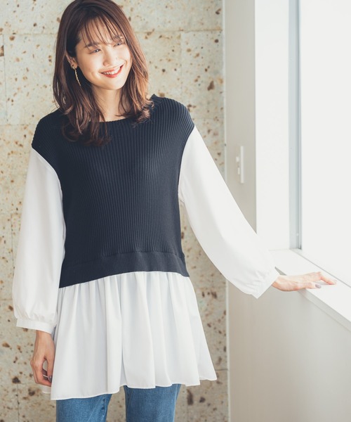 1枚でスタイリングが完成♪1枚でサマ見えするトレンドのボリュームスリーブが可愛らしいドッキングプルオーバー。秋にも使いやすい袖丈や素材感でシーズン長くお使いいただけるのもポイントです。女性らしさを感じるデザインなのでパンツスタイルで甘辛MIXしたスタイリングもおすすめ!手洗い対応も可能なので取り扱いのしやすさも特徴のアイテムです。