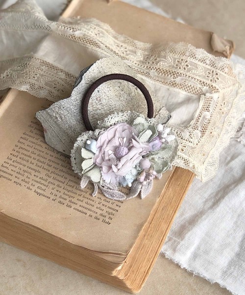 ・*:・アイスグレーのヘアゴム ・:*・ アイスグレーに手染めした布花やレースを使ったシリーズ。 お花ひとつひとつを手染めしているため、柔らかなカラーに仕上がりました。 素材の違うお花たちは染まり方もそれぞれ違うので、 その色の違いによって立体感もあるデザインに。 ヘアゴムはヘアアレンジが苦手な方にもおすすめ。 さっとまとめるだけで、きちんと感を演出できるのが嬉しいですよね* アイスグレーの優しい色合いは、いろいろな色味に合うので、 普段使いにぴったりです♩ 同シリーズのヘアクリップやコサージュと合わせても◎ アイスグレーシリーズ* ピアス:38995554 イヤリング:35198130 ヘアクリップ:58788854 コサージュ:58788859 【m.soeur(エムスール)*】 m.soeur(エムスール)は京都発のハンドメイドアクセサリーブランドです。 植物の美しさや生命力を表現しつつもお洋服に寄り添うような、ナチュラルでクラシカルなアイテムを 制作しています。 一点一点人の手で作り上げられる手作りのアイテムは温かみがあり、使い込むごとに味わいをましていきます。 ・*:・ ・:*・ ・*:・:*:・:*・ 【注意事項】 ※こちらは手染めを施している商品となります。シミのように見える部分がある場合がございますが、染めの色となり、アンティークな風合いを出すためのものですので、一点一点発色が少々異なった仕上がりとなっております。 ※手作業のため、画像の商品と色、形、大きさが多少異なる場合がございますので、予め御了承下さい。 ※色落ちする場合がございますので水や雨等には十分ご注意下さい。 ※大変デリケートなお作りとなっておりますので、お取り扱いには十分ご注意下さい。
