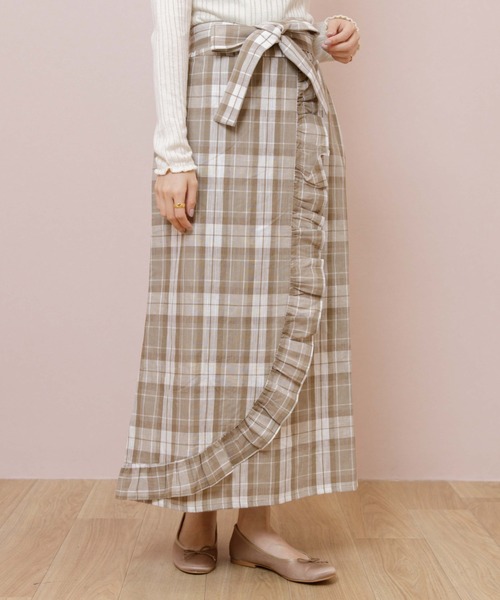 大きめフリル×チェックのロングスカートの登場。シルエットはトレンド感のあるタイトめ。目をひく大ぶりのフリルがグッと上品な印象へ格上げします。シンプルなトップスに合わせるだけで旬のスタイリングに!生地には風通しのいいリネン混素材を使用。ムレを抑え快適に着られるのも嬉しいですね♡ナチュラルな素材感で大人っぽく着られるので甘めのブラウスやカジュアルなカットソーなど幅広いトップスと相性◎のチェックスカートに仕上がりました。ウエストは一部ゴムのイージー仕様。リボンベルトを使って絞ることも可能ですよ♡【お買い物を上手にお楽しみいただくためのPOINT2つ】◎ 購入ボタン横の ♡ (ハートマーク)をクリック! 完売カラーの再入荷通知、残り1点の通知、セールの通知を受け取れます。 (クリックまたはタップで商品のお気に入り登録♪)◎ ショップのトップページにある ♡ (ハートマーク)「お気に入りショップに追加」をクリック! 新商品や再入荷等、いち早くブランドのお得な情報を受け取れます。 (ブランドのお気に入り登録♪)