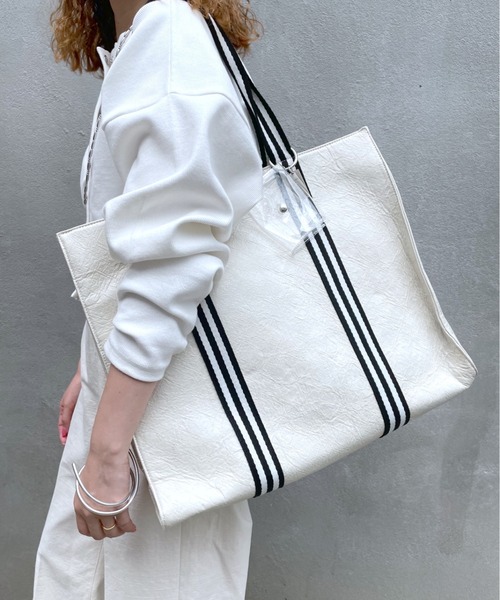 通勤、通学にオススメなビックサイズ!持つだけでこなれた印象に◎ 商品ポイント ・ペーパー素材が新鮮な印象に仕上がるアイテム。 ・軽量素材で機能性も抜群! ・ストライプのラインはトレンド感を醸しながらスタイリングのポイントに。 ・通勤、通学にも嬉しいA4サイズも収納可能で書類はもちろん、パソコンも入るサイズ感。 ・クリアのポーチとチャームがアクセントに。 ※ベージュのカラーは以下品番よりご購入いただけます。 MYZ1011612A0004 < loti how to use > バッグの容量紹介 ・note computer ・A4 print ・schedule book ・pen case ・pouch ・500ml bottle ・wallet loti・・long timeから名付けられたブランド名。 長くどんなシーンでもずっと使えて使う度に好きになる。 そんな気持ちが込められたオンライン限定展開のバッグブランドです。 スタッフ着用コメント 〇スタッフA カラー:オフホワイト ほかのブランドにはない素材感に一目惚れしました! この素材感が存在感があり、こなれた印象になるので、 とても気に入っています! 素材がすごく軽いのに大容量なので、とても助かってます! ラインデザインがポイントになるので、 シンプルなコーデにも相性抜群です! また、色々な素材に馴染みやすいので、一年を通して使っていただけます。 商品のお気に入り登録➡ お気に入りアイテムの値下げ・再入荷・在庫1点などの通知を受け取ることができます。 ブランドのお気に入り登録➡ 新商品や再入荷、セール、クーポン配布などお得な情報を受け取ることができます。 ※サイト上のカラー名と、お届け商品に記載されているカラー名が異なる場合がございます。 ※商品の色味は、撮影場所や光のあたり具合などにより色味が違って見える場合が御座います 。 また、お客様のお使いのPCのモニター環境などにより色味が違って見える場合が御座います。予めご了承の上ご注文下さい。 ※ご注文いただいた予約商品のお届け時期の確認は、注文履歴ページより行えます。 ※付属ポーチサイズは以下を参考にご覧ください。 高さ 7.5㎝ 幅 10㎝ マチ 2㎝