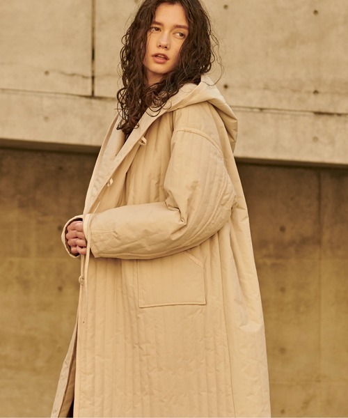 「KHA:KI / カーキ」リバーシブルストライプキルティングコート STRIPED QUILT TAFFTA マットな風合いのナイロンタフタ素材を使用し、ストライプ柄にステッチを入れた中綿入り素材です。 REV STRIPED QUILT COAT ストライプパターンの中綿キルティングロングコートです。リバーシブルで着用でき、裏側はステッチレスに仕上げることで、インナーやボトムとのバランスによって表裏使い分けれるデザインです。スエードを使用した各シームのパイピングディティールが程良いアクセントとなっています。 KHA:KI 「khaki」はオリーブ、キャメルなどミリタリーウエアの色全般を差すコトバとして使われているちょっと変わった色。もともと土ぼこりを意味した「kha:ki」今では誰もが日々慣れ親しんでいる色。いつも身近ににあるカーキ―色。ミリタリーウエアの様ないつまでも枯れない普遍性。ずっと長く着続けて欲しい。そんな思いがこのブランドには込められています。