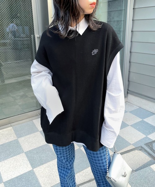 【2021AW / NEW ITEM】 ベストはサイズ感が大事。 これに尽きる。 このサイズ感を誤ると、うっすらとイメージできるビジネスマン風になってしまう。 僕らのサイズ感は、 やっぱりオーバーサイズのビッグシルエットだ。 発売するワッフルベストは、 着てみるとけっこう可愛い。 特にベストは肩周りのデザインが重要だと思っている。 内に入るデザインが多いんですが、 これはドロップショルダーデザインで肩から少し落ち感がでる感じの丈感。 また、ニットじゃなくてワッフル素材にすることで、ストリートの持つラフさの雰囲気をつくりだしている。 今はビッグTEEと合わせて、秋にはロンTEEと重ねて、、 と割と長く付き合えるアイテムになるんじゃないでしょうか? 一緒に発売するワイドパンツと合わせても新鮮なスタイルが楽しめると思います。 ※撮影環境やご覧のモニター環境によって、実物と多少色味が異なって見える場合がございます。 ご了承くださいませ。 *気になるアイテムは《お気に入り登録》がオススメ! 入荷情報やクーポン、セール情報が通知されるようになります。