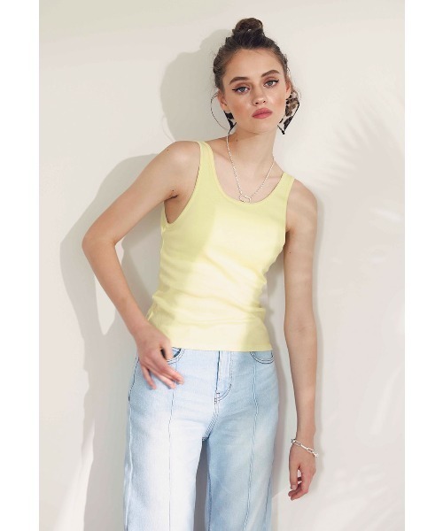 背中開きのデザインで仕上げた、ヘルシーな抜け感をプラスしてくれるタンクトップ。1枚でも着用できるパッドインタイプの一体型デザインで、アンダー部分にはゴムを配し、しっかりとバストを支えてくれます。バランスよくスタイリング出来る丈感で、伸縮性のあるリブ素材を用いることで、アクティブな動きも快適。大人の女性に嬉しいシンプルなデザインで、インナーとしての着回し力はもちろん、1枚でも気兼ねなく着用でき幅広く活躍してくれます。※モデル着用画像はイメージのため、実際の商品のお色と異なって見える場合がございます。商品の詳細画像が実際の商品により近いお色となります。※製品タグに注意事項の記載がございますので、お読みいただき、正しくお取り扱いください。※サイズは平置き寸法です。