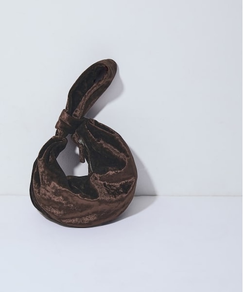◆2021-22秋冬◆ADAM ET ROPE' FEMME【Material】キラキラと華やぎのある光沢が上品な印象を醸し出す、クラッシュ加工のベルベット生地を使用。【Design】半月型のフォルムで、スマートフォン・ミニウォレット・鍵・リップなど、たっぷりとした収納力のあるワンハンドルバッグ。ハンドルをループに通してキュッとコンパクトに持てるデザインで、巾着型のフォルムにベルベットの光沢が合わさり、エレガントな秋冬ムードが高まるアイテム。【Color】シックな印