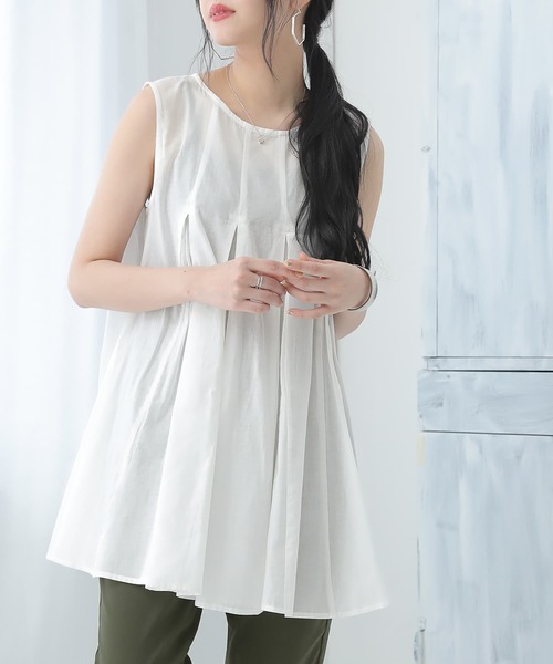 『ひらり揺れて、視線を奪う。』 たっぷりのタックとフレアシルエットが大人女子の雰囲気を格上げする、ノースリーブトップス。 少し長めのチュニック丈&広めにデザインされた肩幅が気になる部分をしっかりカバー! こなれた印象も演出する優しい肌触りの綿100%素材で、さらりと軽い着心地。さらに、お好みで選べるM~3Lサイズ展開です♪ 今、好きな物、興味あることを自由な発想で表現できる≪ n'OrLABEL ≫。 「実用性と機能性、そして遊び感覚」、多面性を楽しめるピュアでモードなデザインライン。 女性らしい佇まいを魅せる≪n'OrLABEL≫タック切替フレアロングタンクトップです。