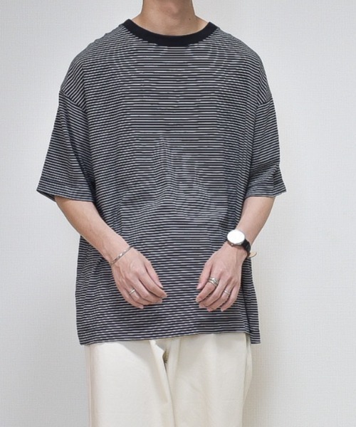 【ファッションインフルエンサー たいが - クルーネックオーバーサイズTシャツ made in INTER FACTORY】 ファッションインフルエンサーたいががこだわり抜いた着回し抜群のTシャツが登場!! [素材] 20/2天竺(ニマルソウ)天竺280g/㎡ C100%を使用しております。 太番手の糸が多く、繊維長が短い糸のカード糸を使用している為、カジュアルな雰囲気を醸し出し、 肉厚の天竺地を使用しているので着やすく洗いざらし感の出る素材感となっております。 [デザイン] トレンド感のあるワイドシルエットで、体のラインを拾わず細みえするデザインになっております。 ワイドながらもスッキリ見えるので、普段ワイドシルエットを着用しない方でも挑戦しやすいです。 上からシャツやアウターも羽織れるので着回し抜群◎ 袖も短すぎず肘までカバーでき、袖幅に余裕を持たせているので風通しが良く快適に着用いただけます。 色展開は定番のホワイトの他に、ベージュ、ボーダーの3色展開になります。 どの色を選んでもコーデを組みやすいので、複数買っても間違いないアイテムです! ※屋外での撮影画像や光の当たり具合で色味が異なって見える場合がございます。 商品の色味はスタジオでの詳細画像をご参照下さい。 [ INTER FACTORY ] 2019年2月28日創立 時代のニーズに合わせたトレンドベーシックアパレルをベストプライスで展開。 クオリティとマテリアルセレクトにこだわった新時代のファクトリーブランド。 ▼商品のお気に入り登録 完売カラーの再入荷通知や、ラスト1点、セールの通知をお知らせ致します。 ▼ブランドのお気に入り登録 新商品や再入荷など、いち早くブランドの情報を受け取ることができます。 是非ご利用頂き、お買い物をお楽しみ下さい。