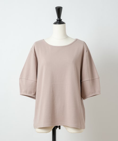 ふんわりとしたボリューム感のあるスリーブがシンプル過ぎないアクセントに。 細かなリブ使いがレディな印象に。 袖のボリュームはさりげなく華奢見せ効果も期待できます。 カジュアルから綺麗めコーデにと、デイリーユースに活躍してくれる、ワードローブの頼れる味方です。 サイズ:肩幅:38.5cm バスト:105cm 袖丈:29cm 着丈:56cm 素材:綿:96% ポリウレタン:4% 原産国:中国製