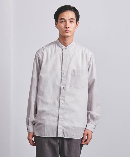 ■デザインフロントボタンは水牛ボタンを使用。リラックスなシルエットのバンドカラーシャツです。■素材コットンにウールを混合したボイルコットン生地。シャリ感とドライタッチが盛夏から晩夏に活躍します。■コーディネイト袖をロールアップし、ショーツと合わせ都会的なリゾートスタイリングもおすすめです。============================裏地:なし透け感:あり生地の伸び:なし光沢感:なし機能性:なし============================【注意事項】※商品を使用前に、タグ等に記載されている「取り扱い上の注意書き」、「洗濯表示」を必ずご確認ください。※商品画像は、光の当たり具合やパソコンなどの閲覧環境により、実際の色味と異なって見える場合がございます。予めご了承ください。※商品の色味の目安は、商品単体の画像をご参照ください。アウトレット商品のご説明・アウトレット商品につきましては包装やパッケージに破損・汚れが見られる場合にも 商品に欠陥が認められない際にはそのままの状態でお送り致します。・ご注文確定後のキャンセル・返品、ご注文内容の変更・追加注文はお受けできません。・セールアイテムは予告なく価格の変更を行う場合がございますが、 ご購入後のアイテムについての価格変更はお受けいたしかねます。 また、タグの表記と購入価格が異なる場合がございます。・"不良品"、"ご注文内容と異なる商品"が到着した場合は、 お客様よりご連絡をいただいた時点で弊社に在庫がある場合に限り、交換対応をさせていただきます。 なお、セールアイテムのため、お品切れの場合は返金でのご対応とさせていただきます。