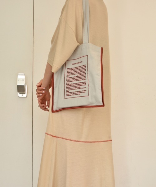 ボディカラーと刺繍のコントラストが美しいコットンバッグです。 フロント全面にシアタープロダクツのマニフェストが贅沢に刺繍で表現され、シーチングバッグの気軽さはそのままに、ほんの少し特別なアイテムに仕上げています。
