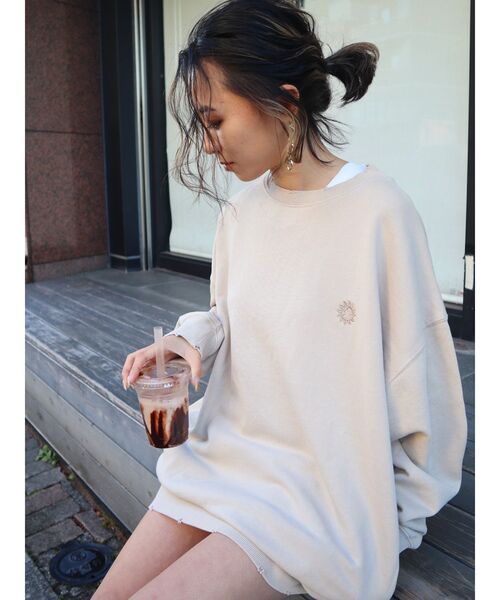 ★先行予約で人気の為、再生産決定…★ \EVRISで大人気のSUNNYモチーフが遂にスウェットに…/ ■商品ポイント ・ポケット付き ・サニーモチーフ刺繍付き ・ビッグシルエットでゆったり着用◎・着丈74cmの大きめサイズ ピグメント加工を施したカジュアルなスウェットトップスです。 EVRISの人気のSUNNYモチーフを刺繍で左胸にいれています。ダメージ加工を施しています。 大きめなのでユニセックスで着用できるサイズ感です。サイドにポケットがついているので実用性もあります。 ※ブラックのみブリーチ加工になっています。