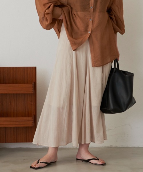 【パネル切替フレアスカート】エアリーな素材感が魅力のフレアスカート。通気性がよく肌触りの良いお素材で着心地も抜群のアイテム。POINT・スタイルアップが叶うシルエット・シワになりにくく高見えするエアリーな素材感・華やかな裾のボリューム感・今年らしいビビットなカラーにも注目STYLINGカットソーやシアーアイテムを合わせた大人カジュアルなスタイリングがおすすめ。足首の見える絶妙な丈感で、フラットシューズを合わせても重たくならずトップスはアウトでもインスタイルでも、スタイル良く見せてくれます。エストには小さなタックを施しウエスト周りのボリュームを抑えるよう設計致しました。トップスや小物次第で様々なスタイルにマッチし、これからの時期重宝間違い無しのオススメの一着です。------------------------透け感/なし光沢感/なし伸縮性/なし裏 地/あり厚 み/薄手------------------------※詳しいお手入れ方法は商品タグをご参照ください。【商品のお気に入り登録】完売カラーの再入荷通知やラスト1点の通知プライスダウンの通知も受け取ることができます。ぜひご登録ください◎【ブランドのお気に入り登録】新商品や再入荷など、ブランドの情報をいち早くお知らせします!ぜひご登録ください◎※ご注意※・屋外の光や照明の当たり具合で、実際の商品の色味とカラー別画像の色味に若干の違いが発生する場合がございます。・詳細画像と併せてご確認の上、ご注文いただきますようお願い致します。