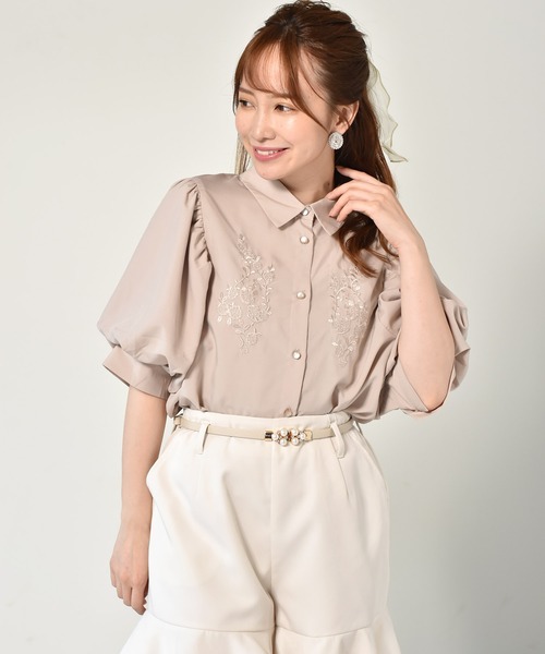胸元の刺繍がポイントのパワショルブラウス胸元の刺繍がポイントののパワショルデザインブラウストレンドスタイルが叶う存在感抜群のクラシカルな雰囲気の漂うアイテムです。シンプルなパンツスタイルにもガーリーなスカートにもあわせて欲しい一枚でスタイリングの幅の広がるアイテムです。※撮影環境やご覧のモニター環境によって実際の商品とお色味が多少異なってみえる場合がございます。ご理解の程何卒よろしくお願い致します。