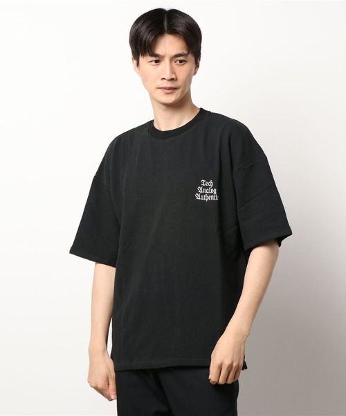 表面変化凹凸素材を使用し、肩ドロップ、身幅ルーズ、サイドスリット入り・胸にブランドテーマロゴ刺繍が入った BIG TEEになります。綺麗目トラウザーにも合せやすく、1枚着としてカジュアルボトムにも合わせられます。展開はオフホワイト、ブラック、マスタードの3色展開になります。
