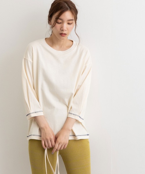 三日月のようなカーブに、袖口のタックで立体的なシルエットが特徴的なクレセントスリーブのカットソー。シンプルながら、普通のTシャツにはないモードなこなれ感を演出してくれる一枚です。クレセントとは「三日月、新月」の意で、袖の内側が直線的で、外側が弓形にふくらんだ三日月のシルエットになっているお袖です。袖口と裾のさりげない配色ステッチもポイント。 POU DOU DOU プードゥドゥ ひと手間加えた存在感のある「日常着」 いつまでもときめきとかわいいを忘れない方への 愛着を持てるワードローブ