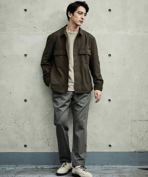 CORDURAxWOOLのリップストップ素材の上質ミリタリーなCPOジャケットです。 <素材について> ・梳毛ウールと摩擦に強いCORDURAで織り上げた上質な機能素材です。 <デザインの特徴> ・ミニマルを意識したシックなデザイン、ウーリーなドレープ感は、ほのかなミリタリーの香りが残るやりすぎないデザインになっています。 <サイズ感・シルエットの特徴> ・絶妙なバランスのゆとり感が、大人も着れるCPOジャケットになっています。 <サイズ表記> 3=M、4=L