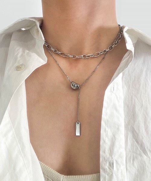 異なるでデザインのチェーンが重なる、上品でインパクトあるネックレス。ドロップチェーンでデザインにアクセントを。これひとつでどんなコーディネートも洗練された印象に仕上げていく。ゴールド、シルバー雰囲気に合わせて2色持つのもおすすめ。【より良いお買い物サービスを】▼商品のお気に入り登録完売カラーの再入荷通知や、ラスト1点の通知、セールの通知も受け取ることができます。▼ブランドのお気に入り登録新商品や再入荷等、いち早くブランドのお得な情報を受け取ることができます。※撮影場所やイメージにより、実際の商品と色味が若干異なる場合がございます。※サイズに若干の個体差が生じる場合がございます。※当商品は機械による生産の過程上、どうしても"生地を織る際の糸の継ぎ目"や多少の"ほつれ"、他繊維の"混紡"、形やサイズや柄に多少の"誤差"が生じる場合がございます。予めご了承下さい。※ご注文いただいた予約商品のお届け時期の確認は、注文履歴ページより行えます。※他のキャンペーンにより、期間中に価格が変動する場合があります。※セールは予告なく終了させていただく場合もあります。
