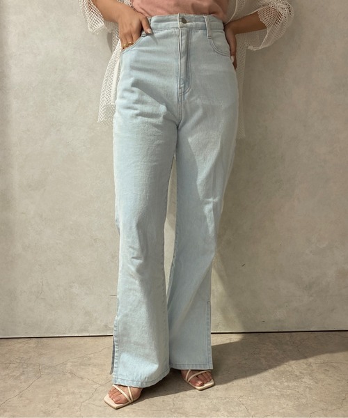 ハイウエストとフレアシルエットでスタイルアップ効果抜群◎ 爽やかなカラーで今の時期にぴったりなライトブルー。 可愛いだけでなく、こだわりをたくさん詰め込んだ優秀デニム。 ハイウエストとフレアシルエットでスタイルアップ効果抜群◎ 深めのスリットは抜け感をプラスしてくれます。 荷物が多い方にはありがたい、ポケットも付いております。 【コーディネート】 合わせやすいシンプルなデザインで幅広いテイストにお使いいただけます。 フリルやレースのブラウスと合わせた甘カジュMIXがおすすめスタイルです。 太もも回りがすっきりとしたシルエットなのでチュニック丈や長めのトップスとのバランスも◎ 【身長別着用感】 〇160cmスタッフ Mサイズ:ゆとりのある着用感で丈はフルレングス。長めの丈がお好きな方はMサイズがおすすめです。 ………………………………… 透け感:なし 伸縮性:なし ポケット:あり ………………………………… ※ご覧のモニター環境や撮影環境により実際の商品と多少色味が異なって見える場合がございます。 ご理解の程よろしくお願いいたします。 【お買い物をよりお楽しみいただく為に♪】 ▼商品のお気に入り登録をおすすめします ♡をクリック! 完売カラーの再入荷や、ラスト1点の通知、 セールの際の通知を受ける事ができます。 ブランドのお気に入り登録も ご一緒にお願い致します。