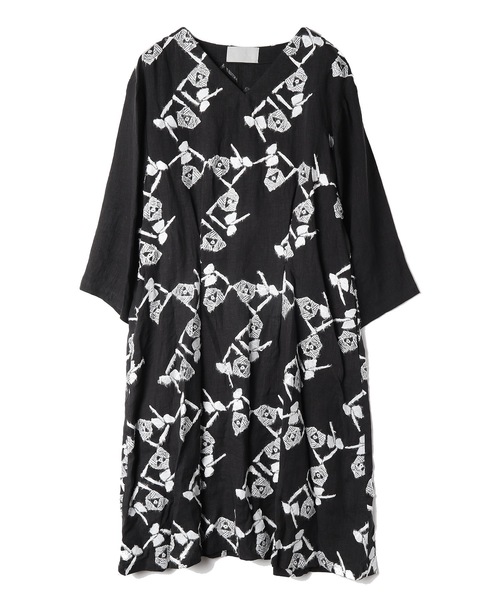 ひらひらとしたゆったりとしたシルエットでラフに着用可能なワンピース。花のモチーフを和紙プリントで表現したpaperflower。ランダムな方向を向きながらも、ひとつながりのように見えるようモチーフで描いた総柄生地を使用しています。春夏はサラリと一枚で、秋冬はレギンスやコートを羽織ってつくるレイヤードスタイルがおすすめです。