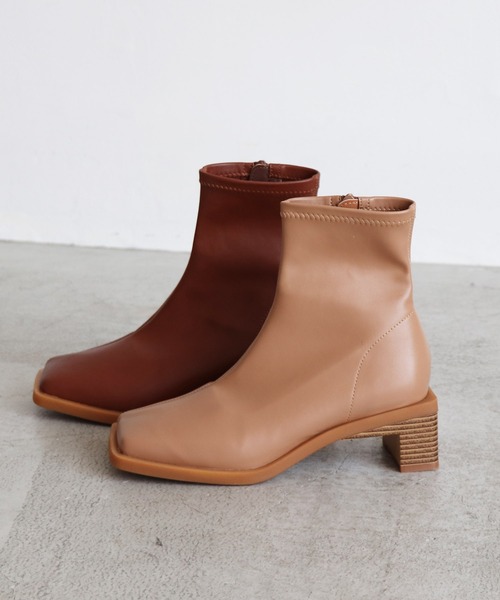 【EVOL 2021AW collection】斜めに入ったラインがポイントのショートブーツ。スクエアトゥと太めのヒールで、歩きやすさとトレンド感◎な1足です。ストレッチの効いたソフトな素材を使用しており、足に程よくフィットしてくれて足をきれいに見せてくれます!ヒールは横から見ると細い女性らしい印象で、後ろから見ると幅があり安定感があるのがポイント! STAFF着用レビュー【普段のサイズ23.5cm or Mサイズ】 筒はストレッチ素材でとても柔らかいです。またつま先部分のクッション性がとても効いていてふかふかしています。つま先のスクエアが幅広めなので、ゆとりがあります。窮屈感はないです。少し変わったヒールとコバが出ていてトレンド感抜群です。 ※履き心地には個人差がございますので、あくまでも目安としてご覧ください。 ※商品画像はサンプルを使用しているため、色味やサイズ等の仕様に変更がある場合がございますので、予めご了承ください。 【EVOL】レディースシューズブランドEVOL(イーボル)“女性らしさ”、“可愛らしさ”、“上品さ”などトレンド・クオリティを20年以上追求した個性豊かなラインナップが自慢のブランドです。 instagram(evol_official0)